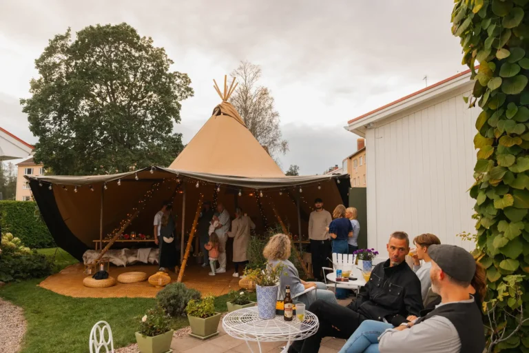 Et tipi telt er ikke bare et telt – det er en oplevelse. Den høje loftshøjde, det runde design og muligheden for at indrette med lys, møbler og dekoration gør dem til et naturligt samlingspunkt.